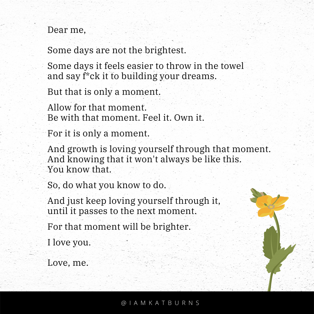 A reminder to have grace in the down, and to keep loving yourself through it until the next moment arises.